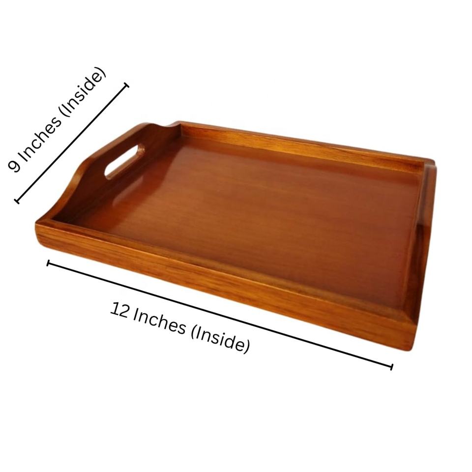 Modèle unique de plateau de service en bois d'acacia manguier de taille personnalisée matériau en laiton écologique pour la maison hôtel restaurant supermarché utilisation