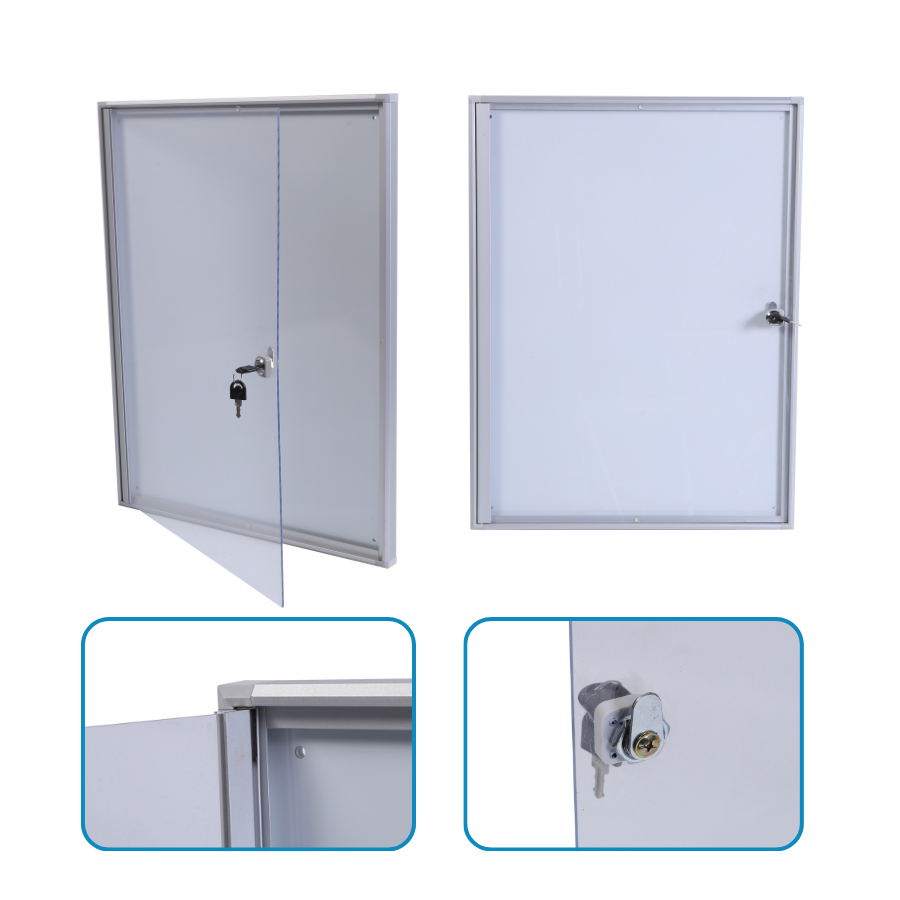 Tableau d'affichage mural sur mesure avec serrure à clé et porte transparente pour bureau, école et hôpital
