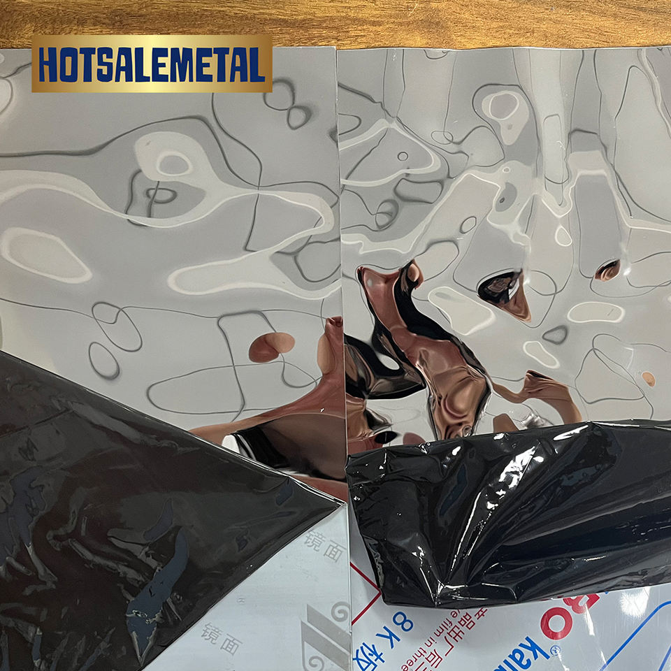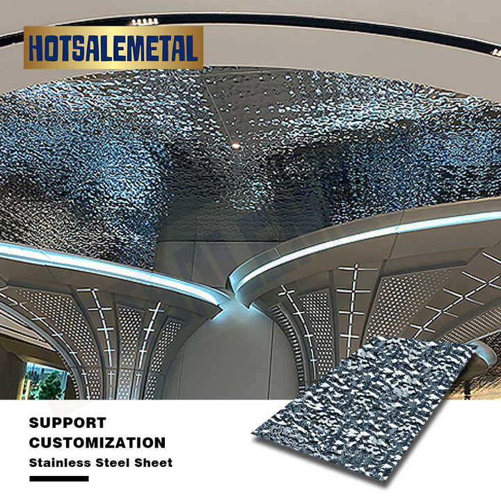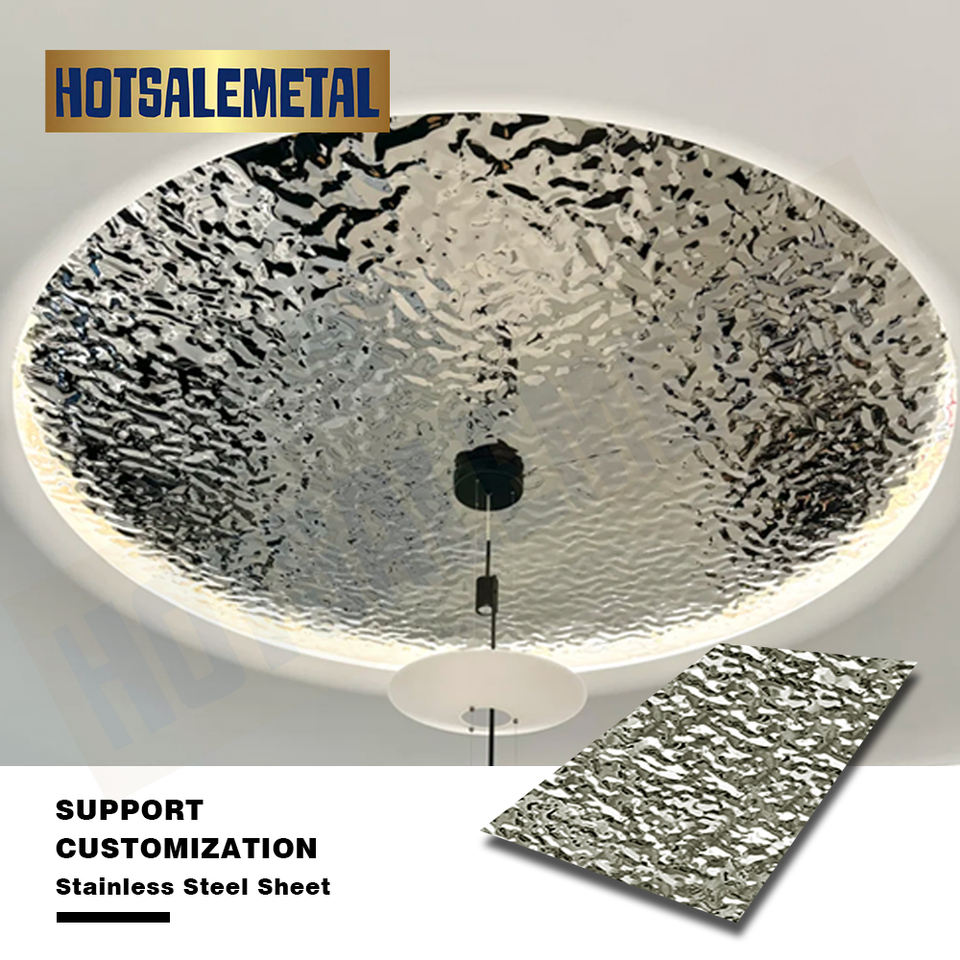 Panneau de plafond en acier inoxydable à effet d'ondulation de l'eau, finition miroir, taille personnalisée, pour hall d'hôtel