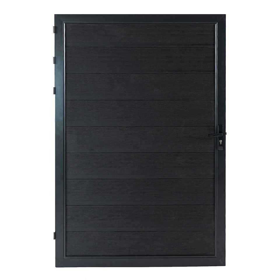 Système de portail en composite bois-plastique sur mesure, installation facile, portail extérieur à lattes horizontales WPC, porte simple pour accès extérieur