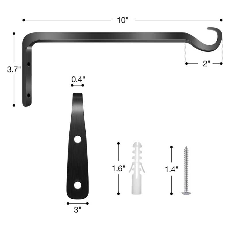 Crochet mural robuste en fer forgé pour plantes, taille personnalisée, pour jardinières, mangeoires à oiseaux, support intérieur et extérieur