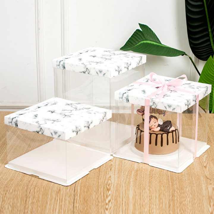 Boîte à gâteau transparente rectangulaire sur mesure pour mariage, anniversaire, fête