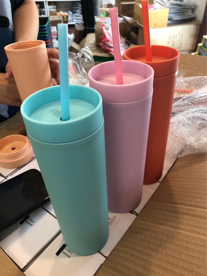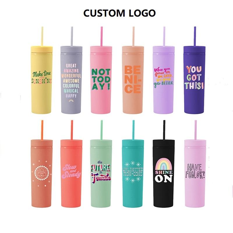 Custom Skinny Acrylic Matte Double Wall 16oz Plastic Coffee Tumbler Cups with Lid and Straw