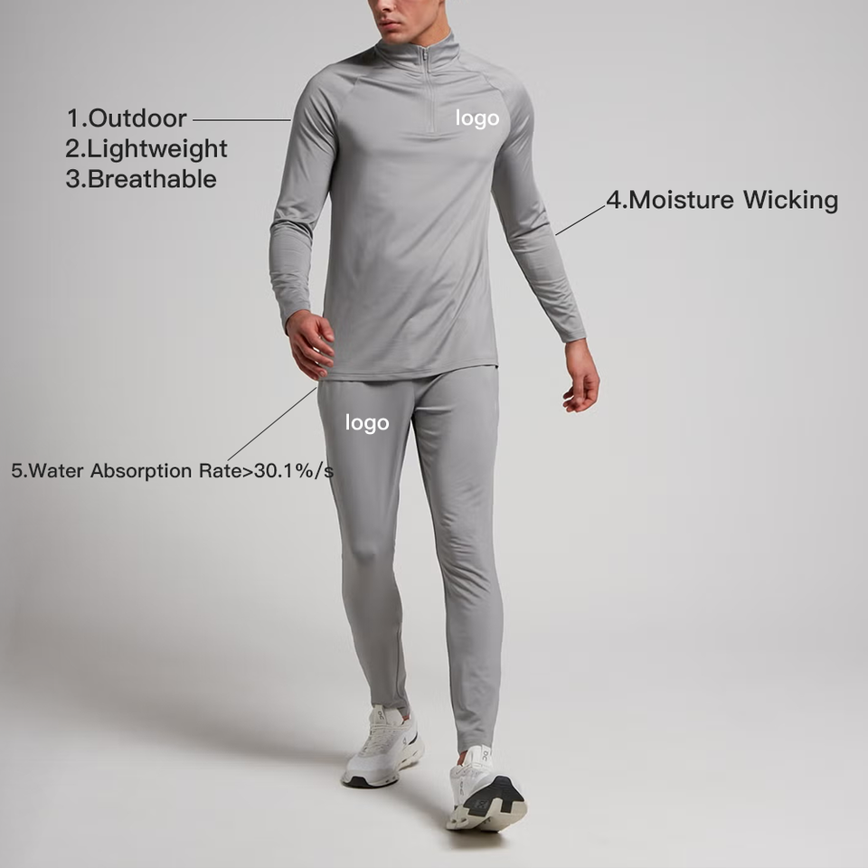 Vêtements de sport légers et respirants à séchage rapide sur mesure pour hommes, ensembles de fitness à manches longues avec col zippé