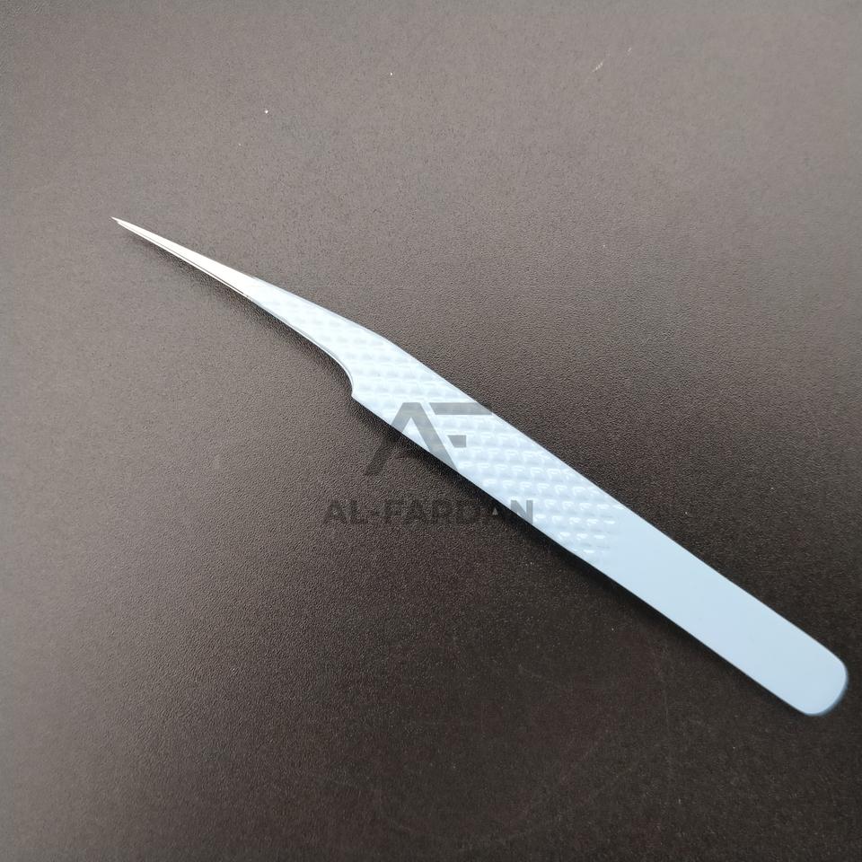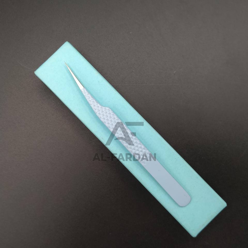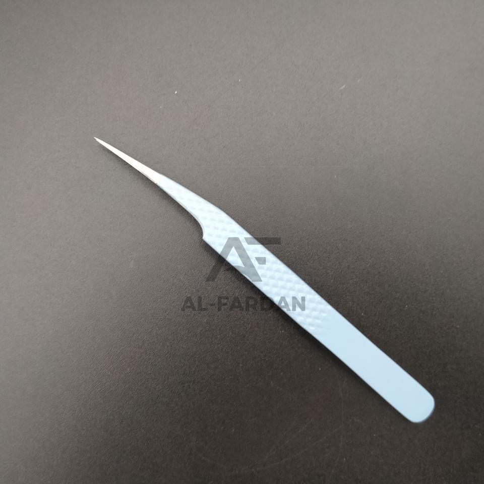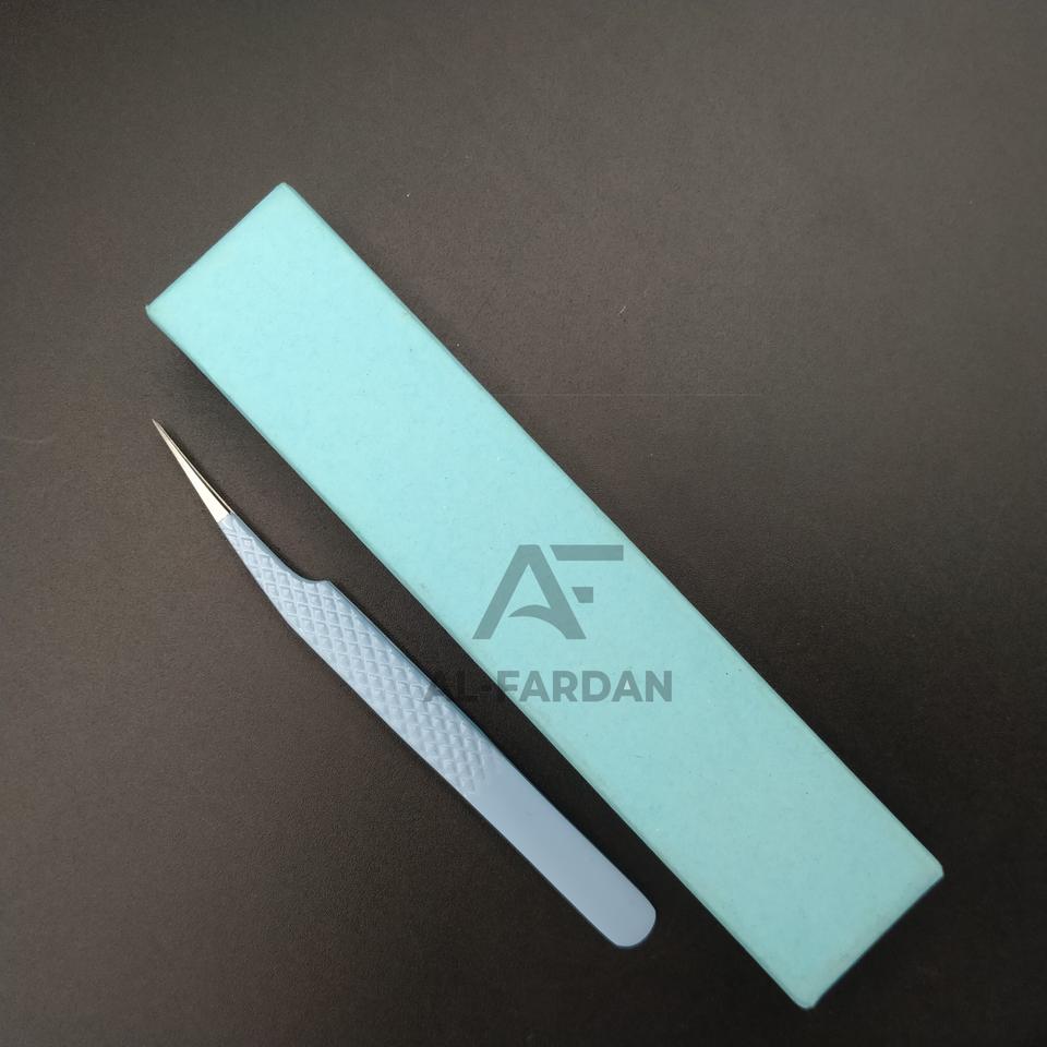 Pince à cils professionnelle en acier inoxydable japonais bleu ciel, pointe droite, poignée diamant, fibre AL FARDAN, durable