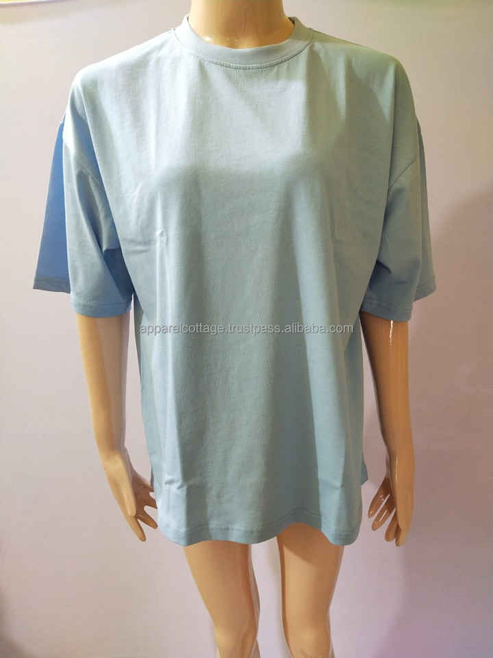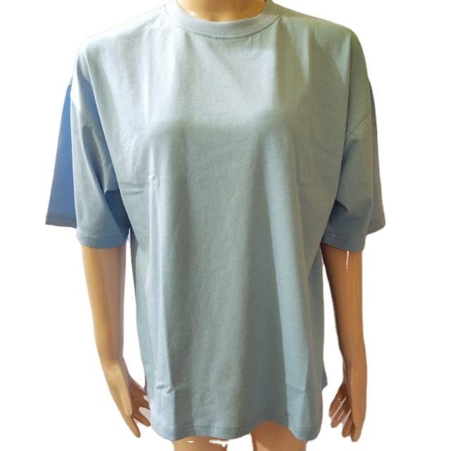 T-shirt tricoté ample, personnalisé, bleu ciel, coupe ample, été, épaules tombantes, longueur aux genoux, col rond, grande taille, pour femmes, 100%