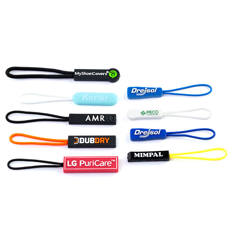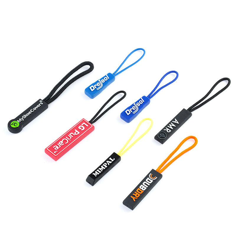 Tirettes de fermeture éclair personnalisées en caoutchouc avec logo pour vêtements et sacs, remplacement de tirettes en silicone avec cordon