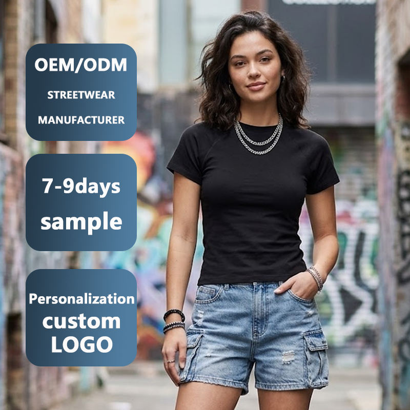 T-shirt à manches raglan pour femmes, coupe ajustée, col rond, manches courtes, basique, en coton extensible, haut d'été pour femmes, à porter au quotidien