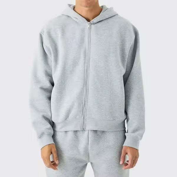 Ensemble short et sweat à capuche à fermeture éclair en molleton 100% coton pour hommes coupe ajustée personnalisée pour l'hiver ensemble deux pièces pour hommes de vêtements d'entraînement avec logo imprimé
