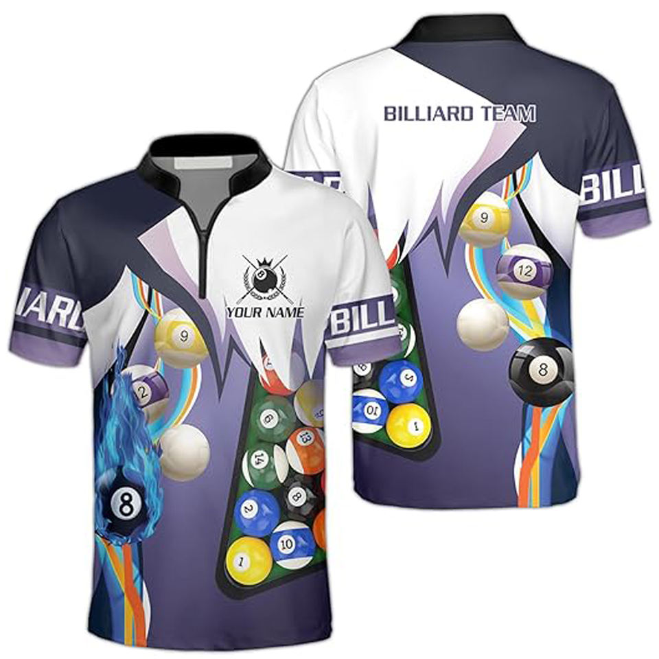 Maillot de billard/snooker personnalisé à manches courtes pour homme, grande taille, impression par sublimation, séchage rapide, respirant