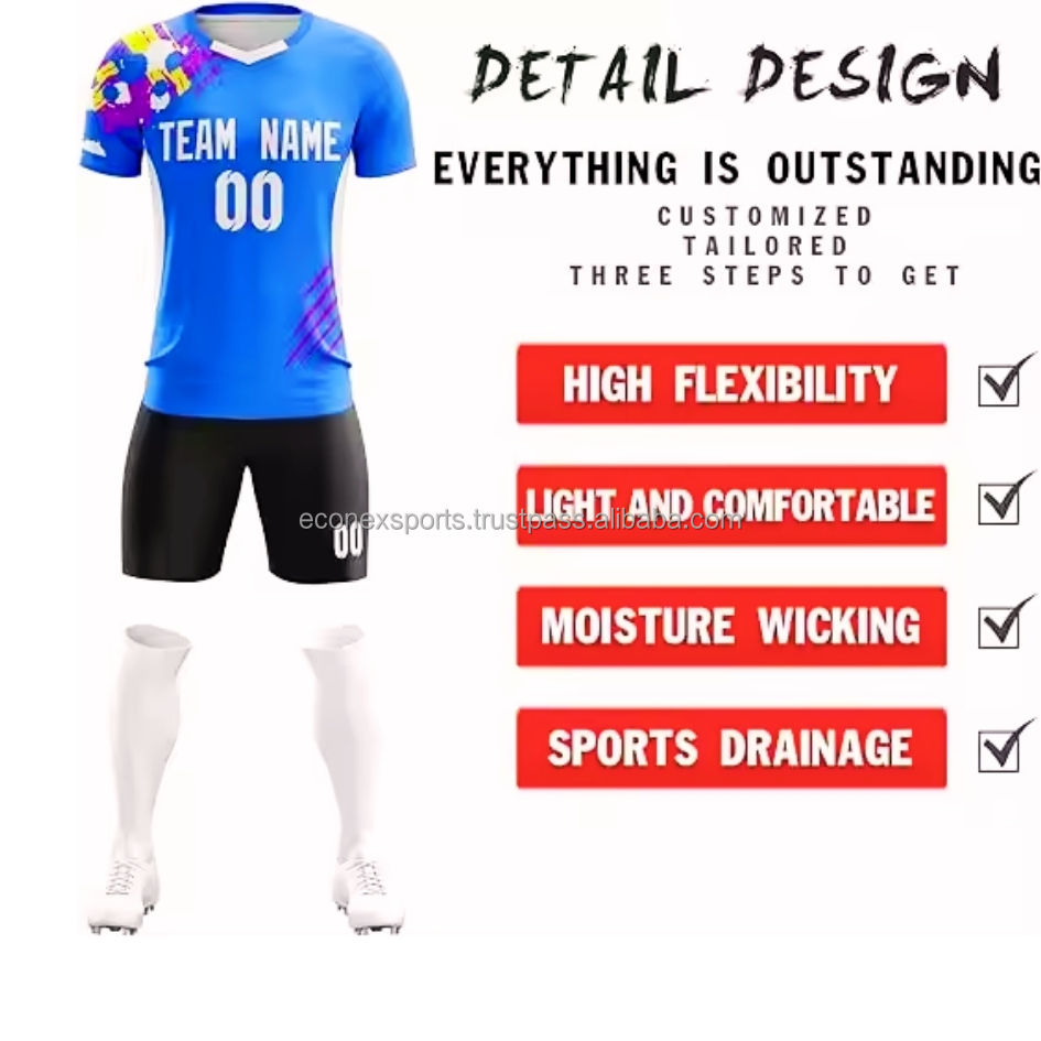 Ensemble de vêtements de football personnalisés 100% polyester uniformes respirants pour adultes enfants T-shirts personnalisés Nom de l'équipe Logo Design Football