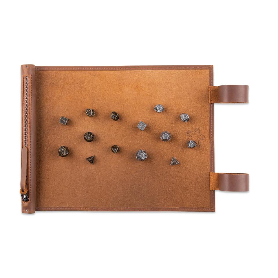 Custom Soft Leather Rolling up Bag Dice Mat Leather Pad Dice Holder for Storing Travel Games Leather Pad Dice Tray Rolling Mat