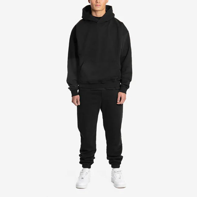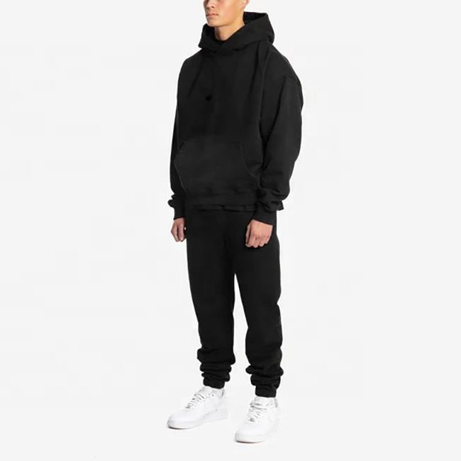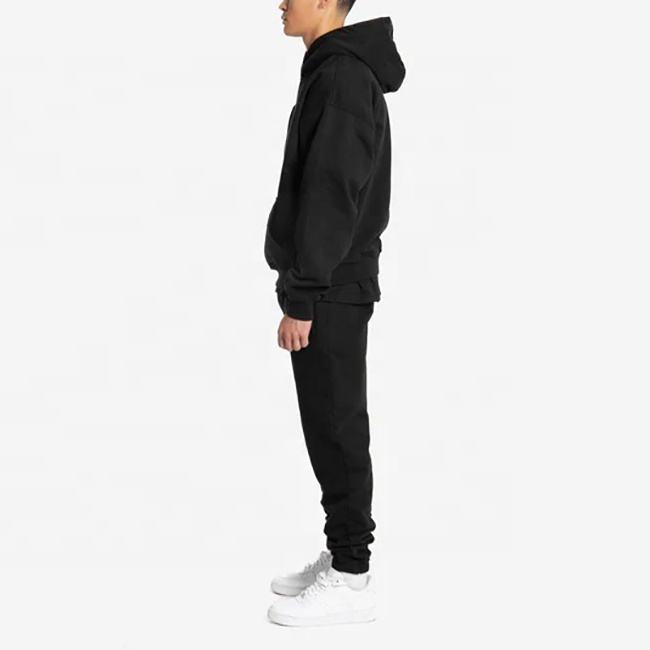 Survêtements pour hommes en molleton noir uni personnalisés, pour l'entraînement, le jogging, sportifs, 100% coton, respirants, écologiques, printemps