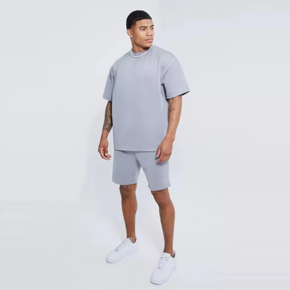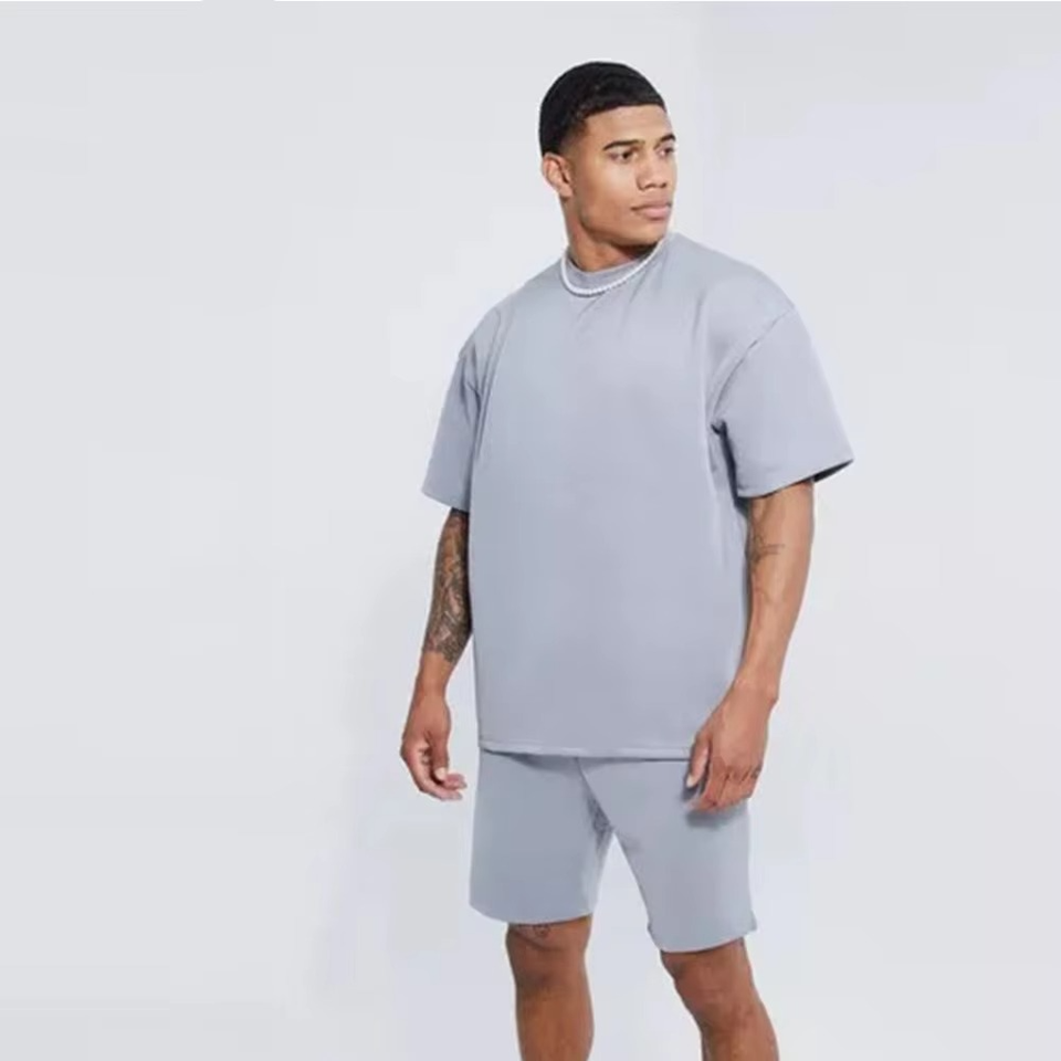 T-shirts et ensembles courts d'été pour hommes de couleur unie personnalisée mode décontractée coupe régulière à manches courtes en coton respirant pour hommes