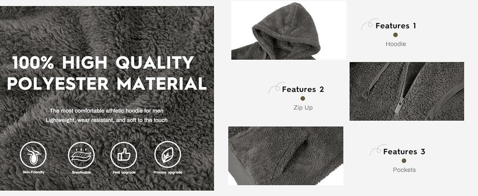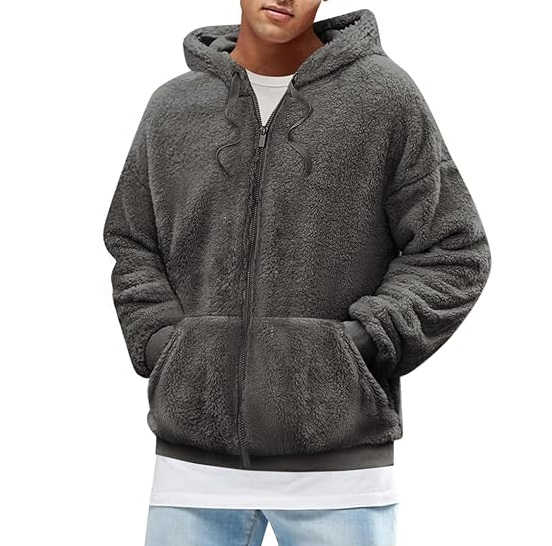 Veste d'hiver en sherpa à manches longues et fermeture éclair unie personnalisée, veste d'hiver, veste en polaire, vestes de mode de rue pour hommes