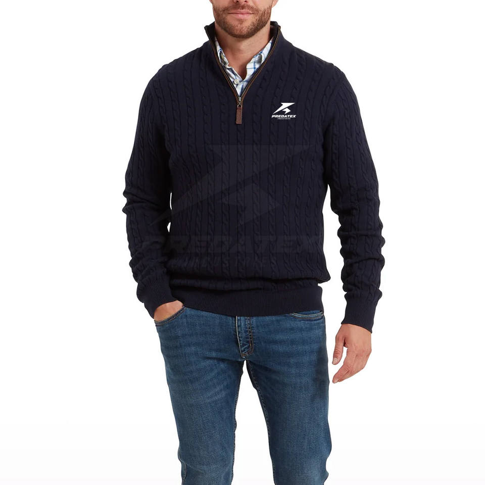 Pull en coton mélangé personnalisé à fermeture éclair quart de tour avec col montant, coupe décontractée d'hiver, respirant et design écologique