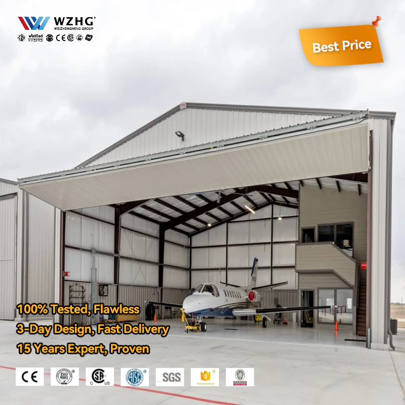 Custom Solid H-Shape Steel Frame Hangar with Insulated Sandwich Panels for Airplane Maintenance Workshops 50-Year Life Span WZH