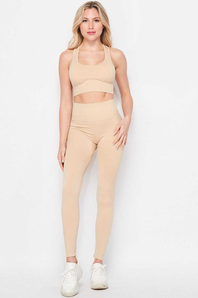 Ensemble de vêtements de yoga personnalisés en tissu solide respirant 100% nylon, pantalons de yoga, shorts de sport, hauts, leggings, vente en gros