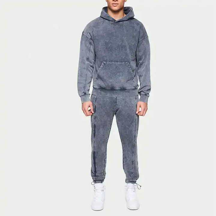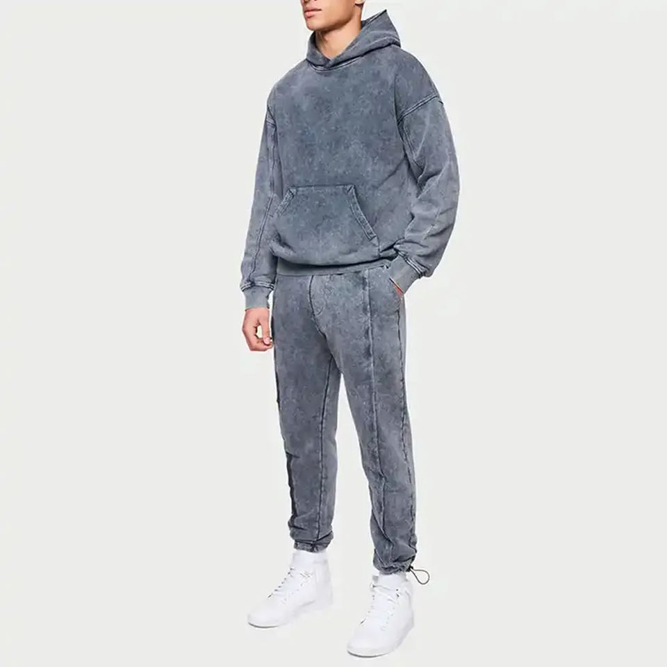 Ensemble de pantalons de survêtement à capuche avec broderie unisexe 100% coton anti-bactérien sweats à capuche zippés