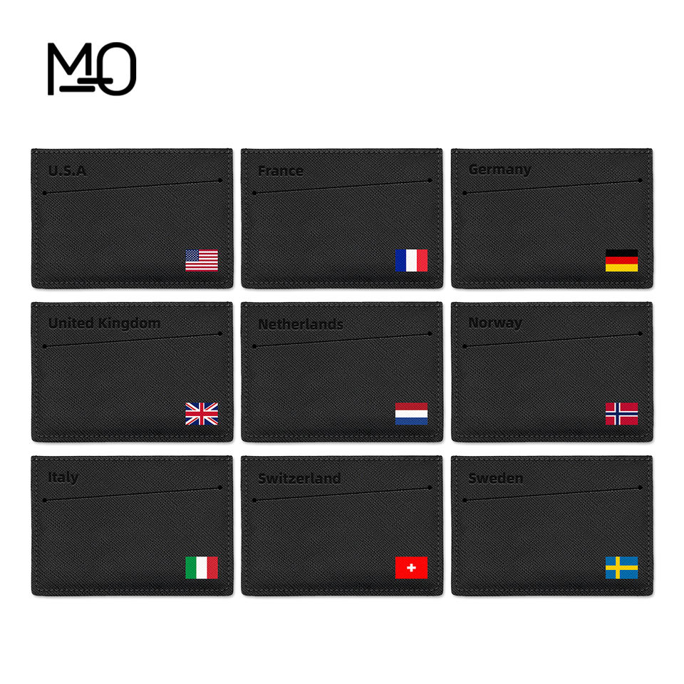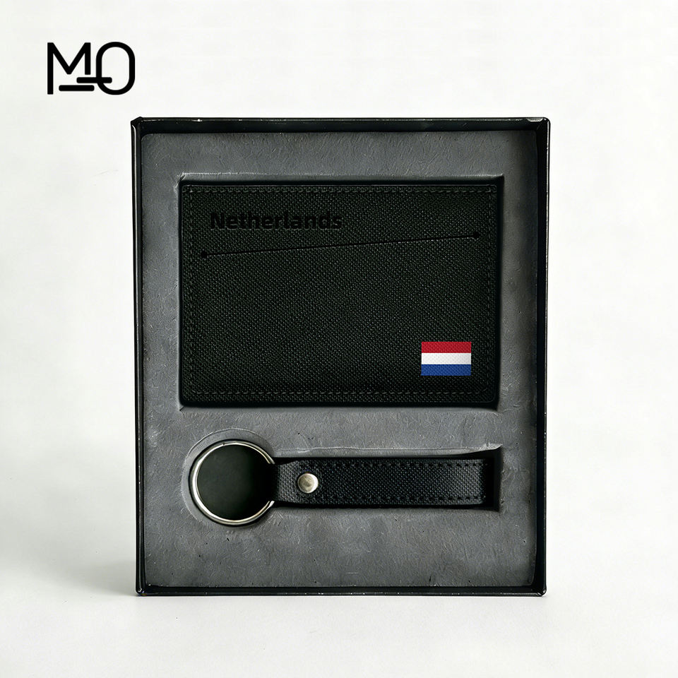 Ensemble Cadeau Portefeuille et Porte-clés en Cuir PU Personnalisé avec Impression Drapeau National, Logo Gravé ou en Relief, Porte-cartes Minimaliste Économique