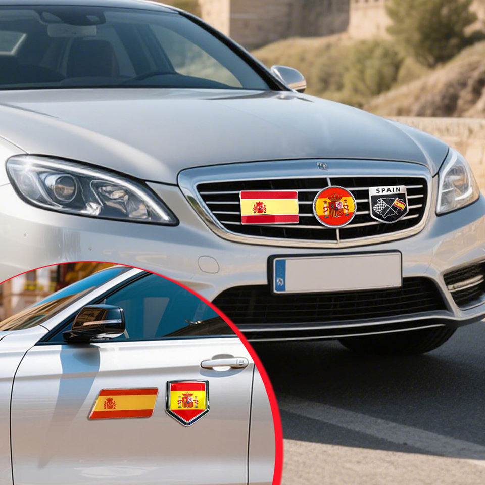 Description du produit:Insigne de voiture en alliage de zinc avec drapeau espagnol