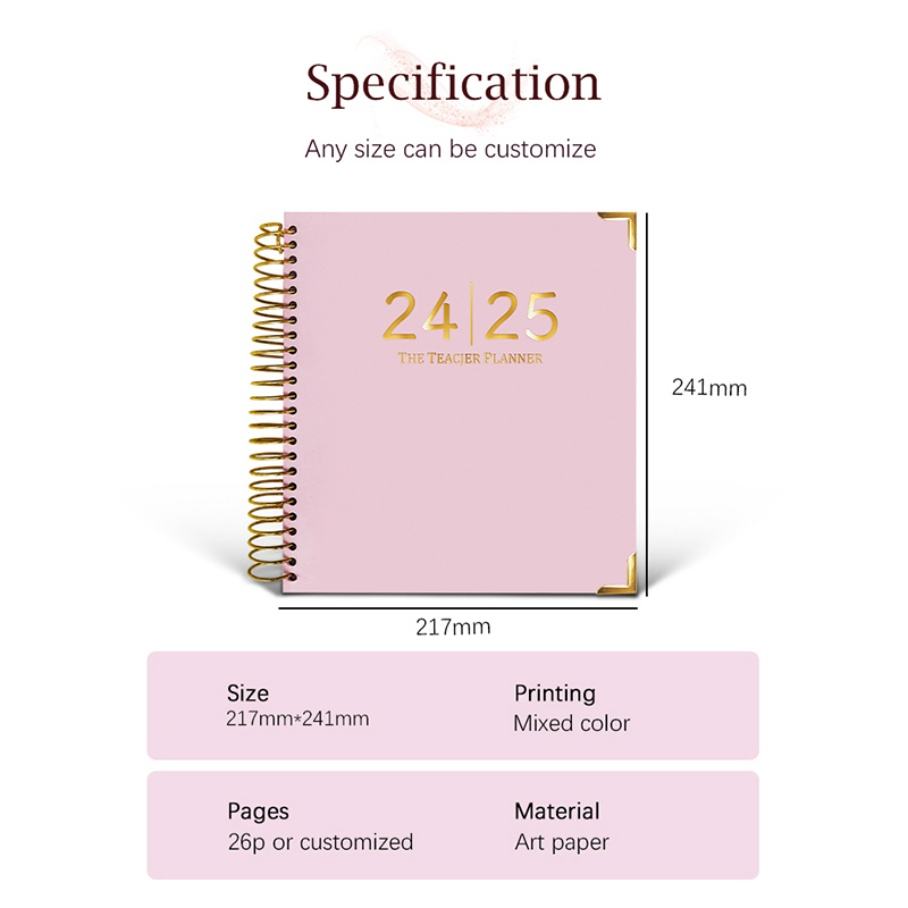 Carnet de planification personnalisé avec reliure spirale A4 A5, logo doré, journal quotidien, hebdomadaire, journal de soins personnels, planificateur de remise en forme