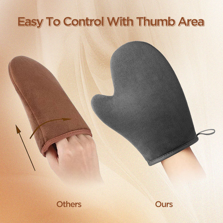 Gant applicateur d'huile de bronzage en éponge personnalisée, gant d'auto-bronzage avec pouce
