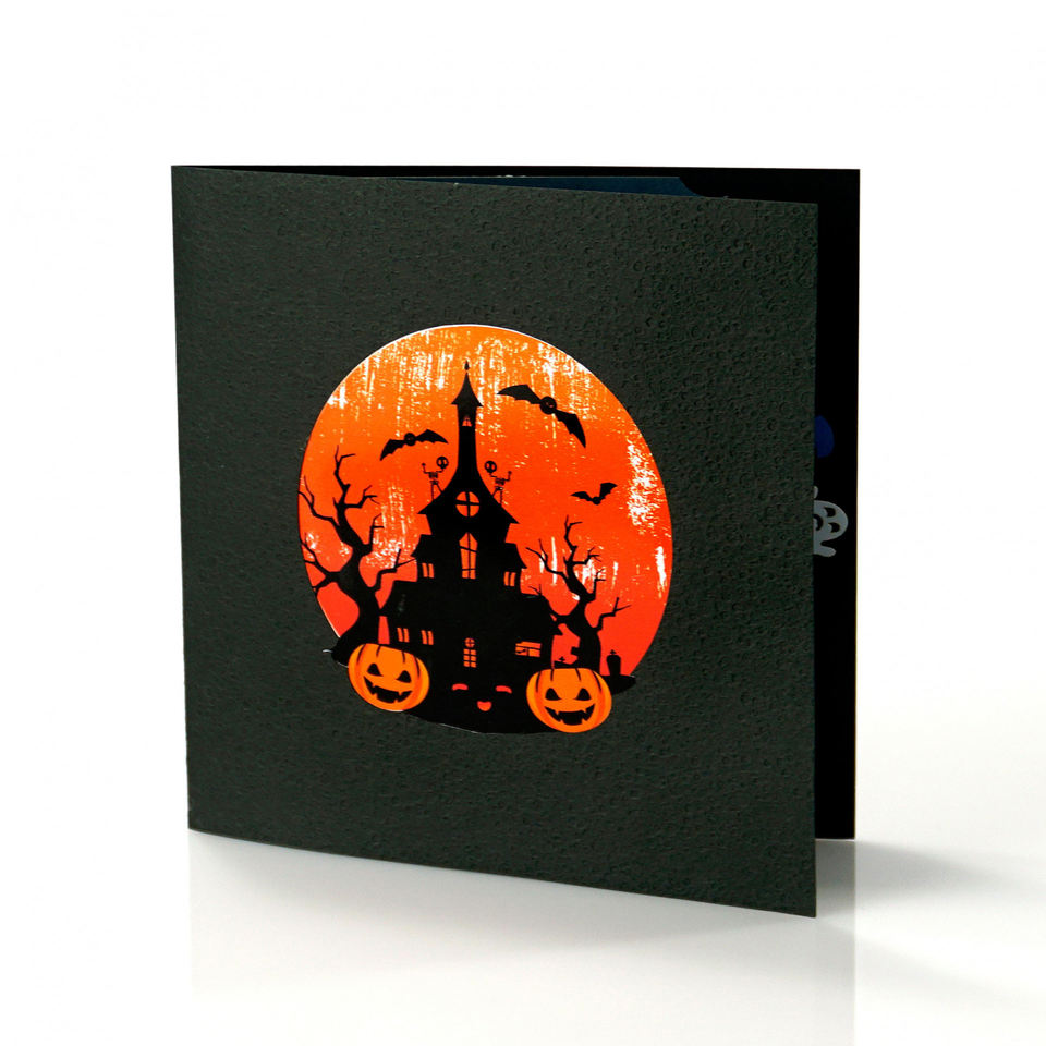 Carte pop-up 3D de cimetière fantasmagorique personnalisée, cadeau d'affaires fait à la main pour Halloween, boîte à enveloppes, artisanat en papier