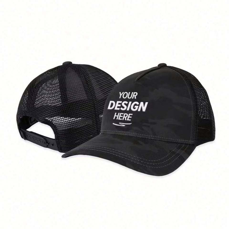 Casquette de camionneur sportive personnalisée à 5 panneaux avec 100% de coton sur le devant et maille 100% de polyester pour les aventures en plein air