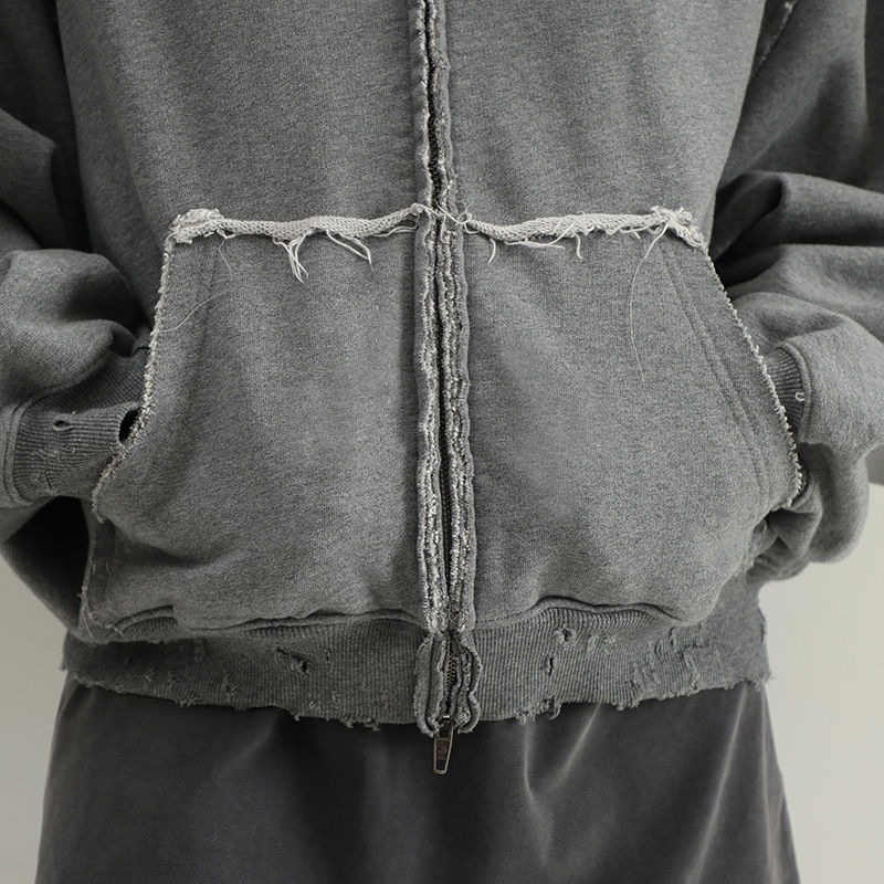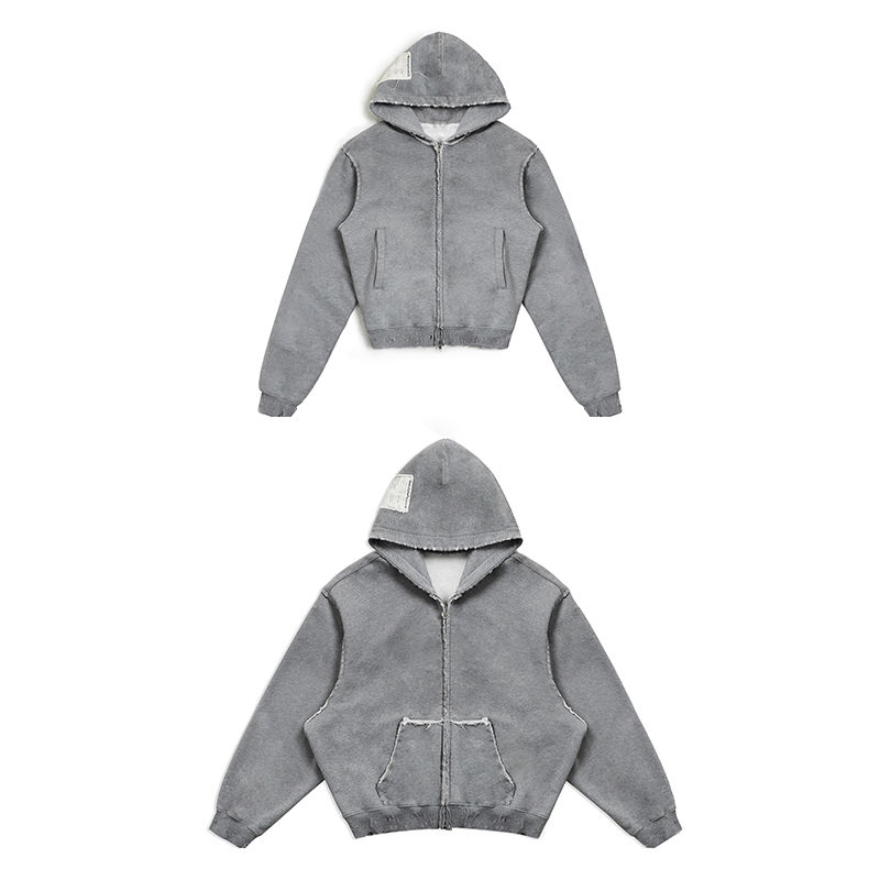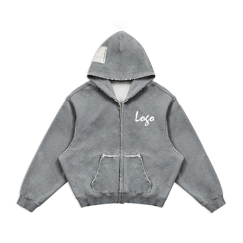 Sweat à capuche surdimensionné avec impression de logo graffiti personnalisée, coton lourd 460g, molleton français, fermeture éclair, sweat à capuche court