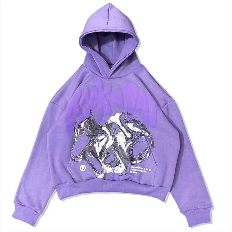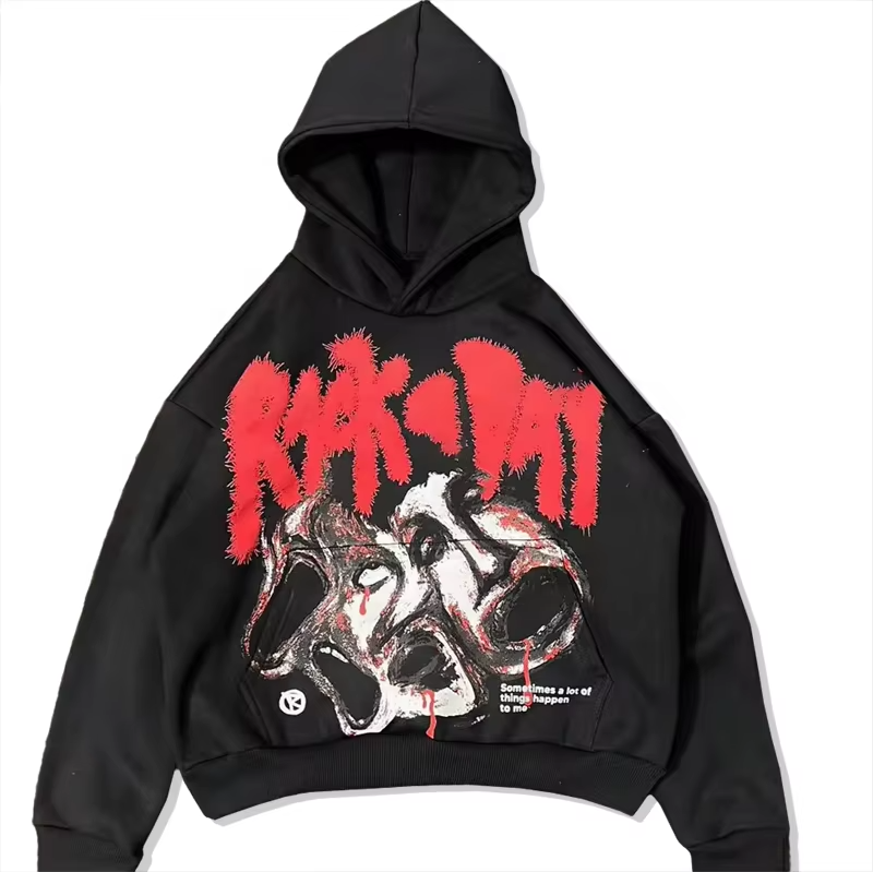 Sweat à capuche surdimensionné personnalisé style vintage américain avec motif imprimé numériquement, 100 % coton molletonné, séchage rapide