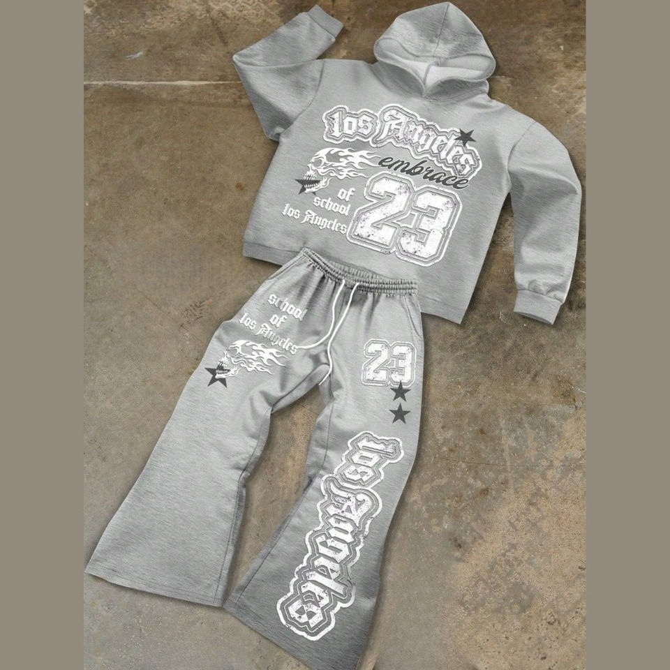 Ensemble survêtement décontracté respirant en coton 100% personnalisé, imprimé à l'écran, sweat-shirt à capuche et pantalon de survêtement surdimensionné