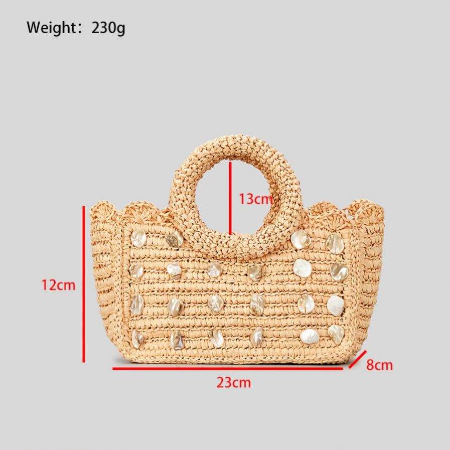 Nouveau Sac à Main en Coquillages Fait Main Printemps-Été pour Femme, Sac de Plage en Paille Tressée, Panier de Plage Simple en Paille