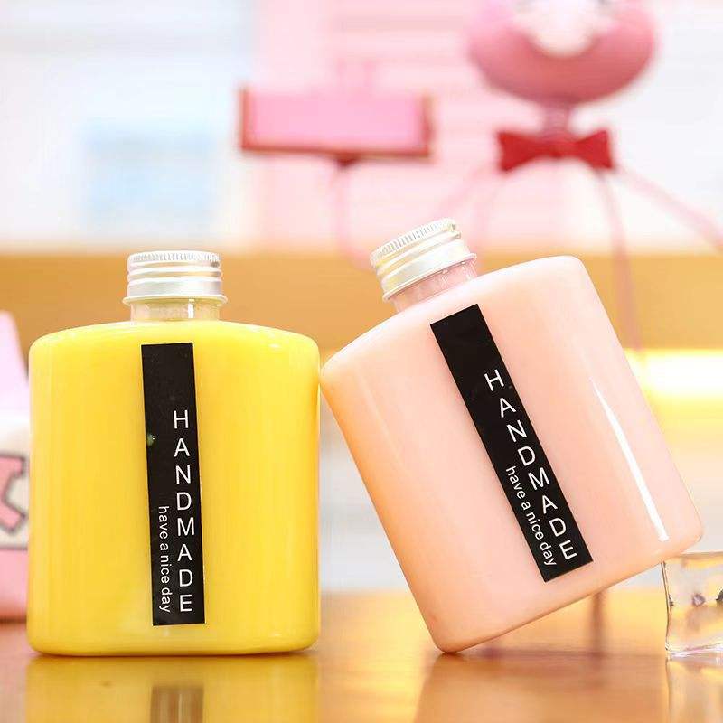 Bouteille de boisson en plastique PET carrée personnalisée de 250 ml à fond lisse avec bouchons à vis en aluminium pour jus de fruits