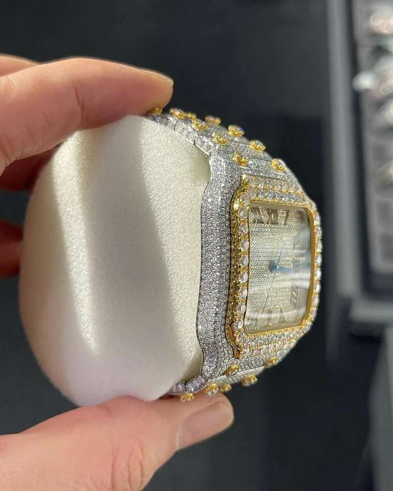 Montre mécanique unisexe de luxe de haute qualité, personnalisée, carrée, style antique, avec diamants et moissanite VVS, style Hip-Hop -Out