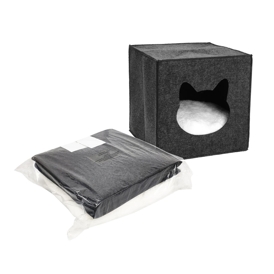 Carré personnalisé pas cher respiration écologique maison pour chat avec coussin amovible chat grotte lit naturel feutre nid pour chat de compagnie