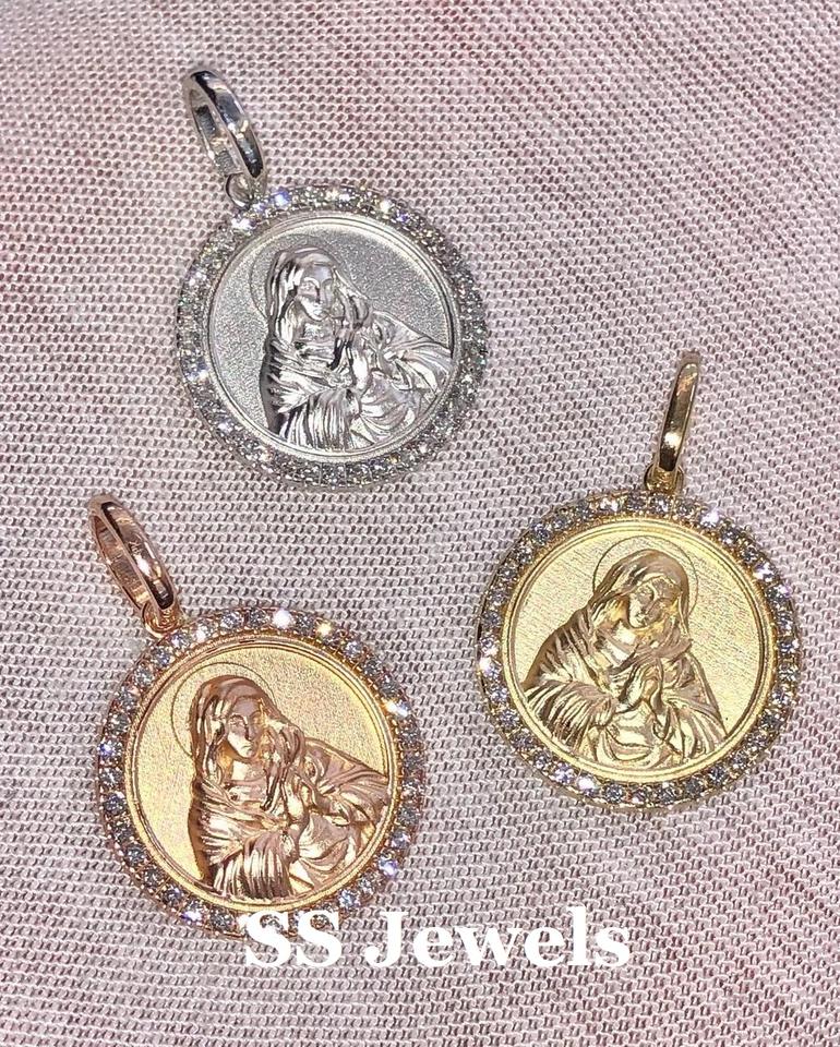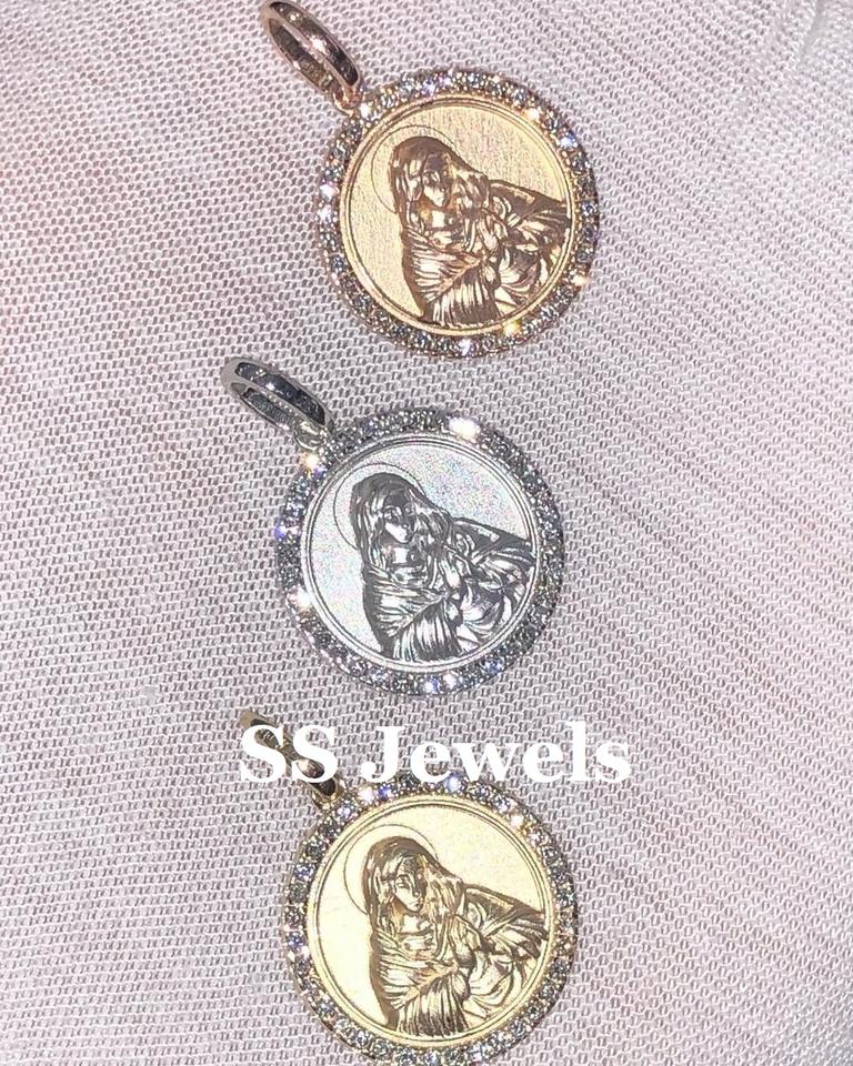 Pendentif médaillon religieux St. Mary personnalisé en argent 925 et plaqué rhodium avec pierres de moissanite VVS cadeau de Noël tendance unisexe