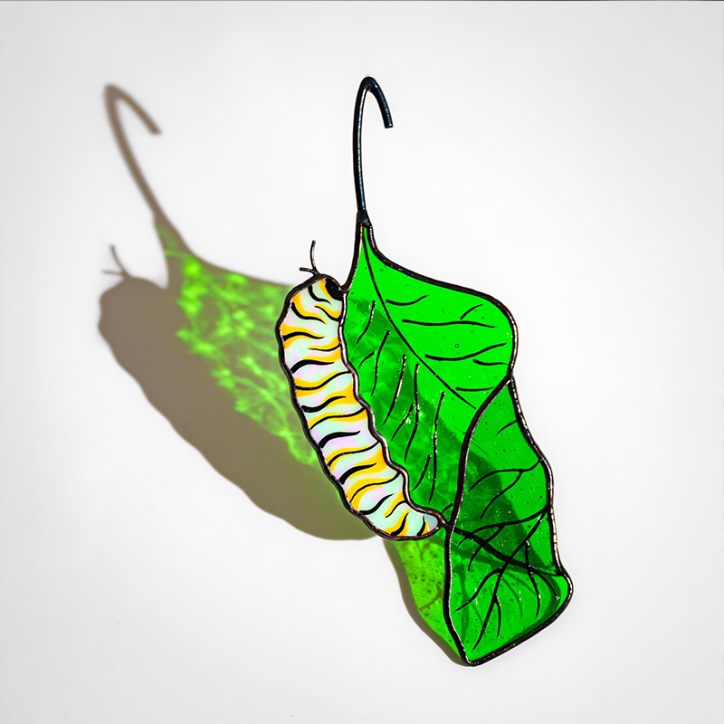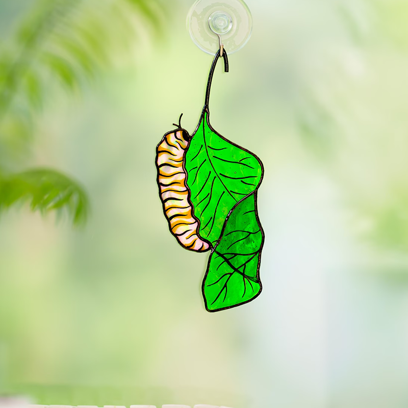 Attrape-soleil en verre teinté personnalisé, chenille monarque, fait main, cadeau de Noël pour les amateurs de papillons et de la nature, décoration intérieure