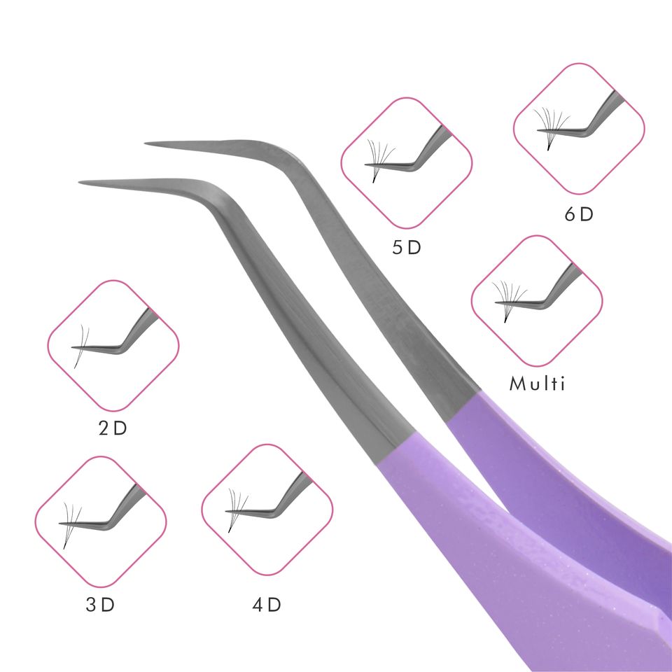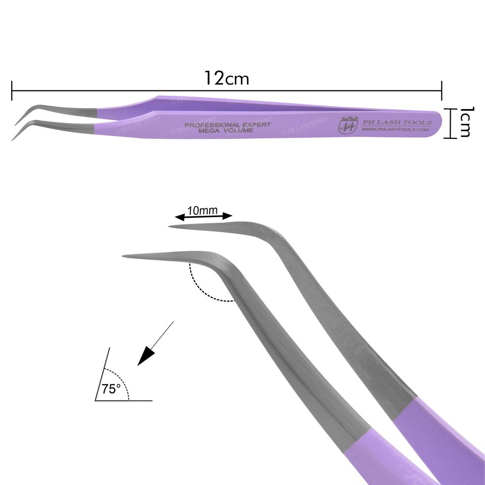 Pince à épiler personnalisable en acier inoxydable, 10mm, 75 degrés, pour faux cils, en couleur violette, étiquette privée, Extension de cils