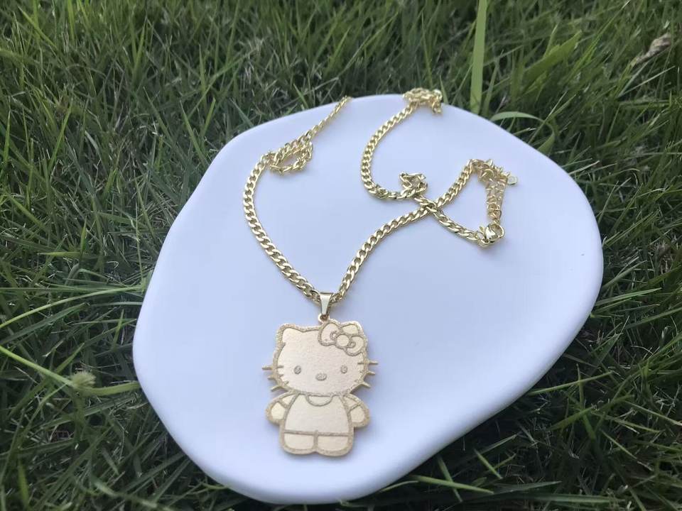 Collier à pendentif personnalisé en acier inoxydable plaqué or avec dessin animé Hello K Bijoux de chaîne de mode personnalisés pour cadeau unisexe Vente en gros