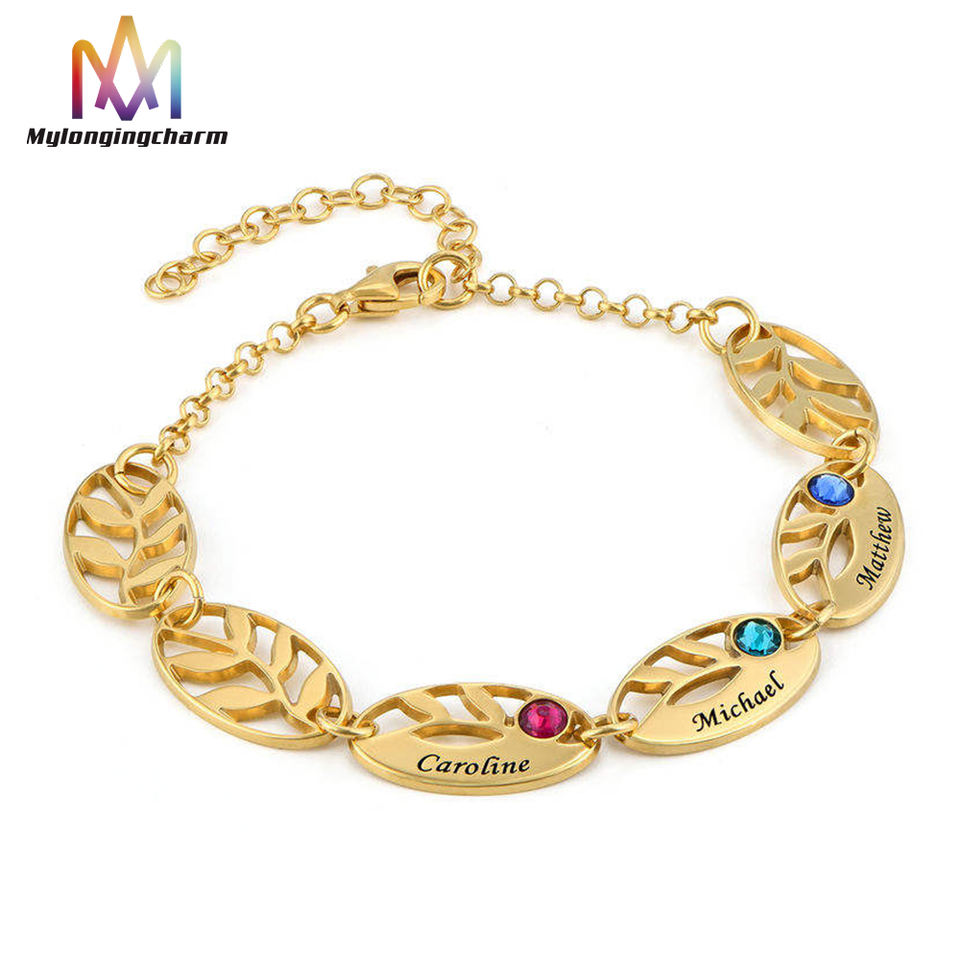 Noms personnalisés en acier inoxydable gravure mère vie arbre feuille chaîne Bracelet en pierre Bracelet pierre de naissance naturelle