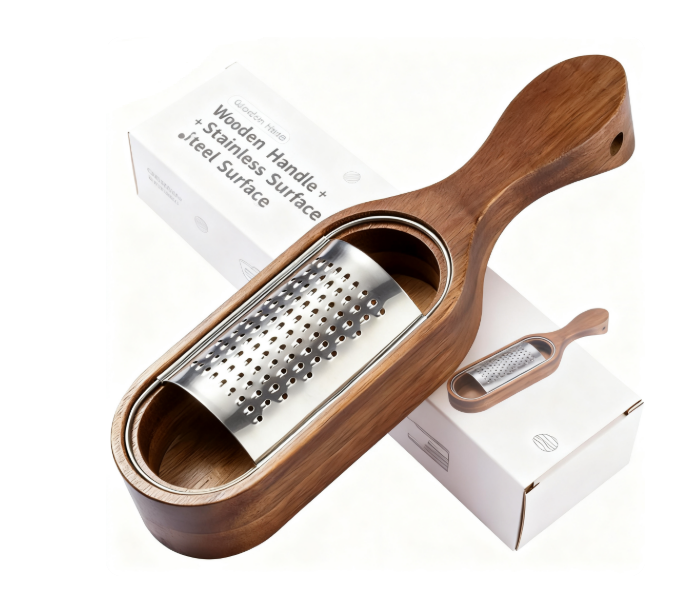 Cuillère à fromage parmesan en acier inoxydable personnalisée râpe à manche en bois conteneur râpe à fromage boîte pour légumes zesteur de pommes de terre