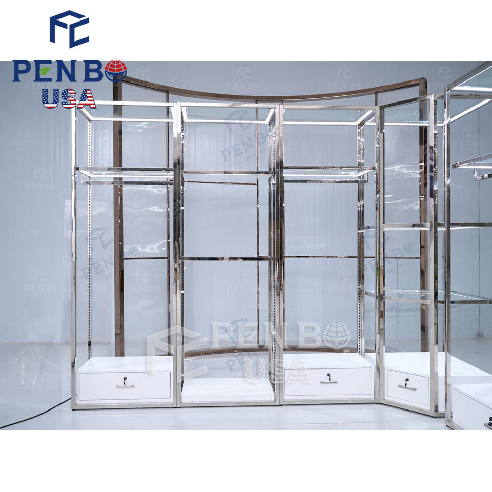 Porte-vêtements personnalisé en acier inoxydable argenté Porte-vêtements boutique vente en gros de présentoirs de vêtements boutique