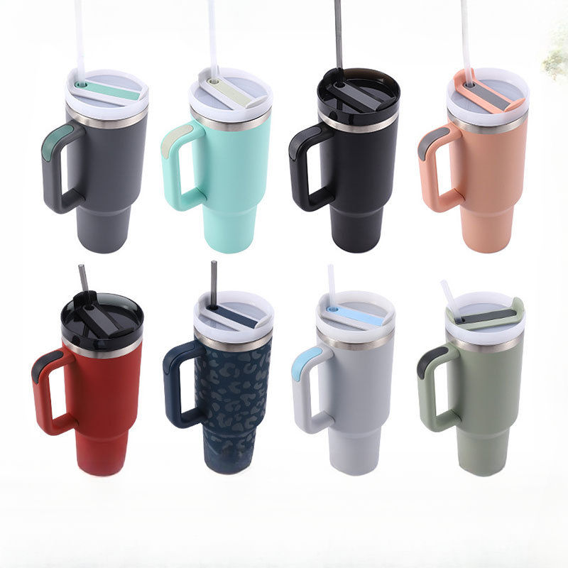 Gobelet personnalisé en acier inoxydable avec couvercle et paille, isolé sous vide pour l'eau, le thé glacé et le café-Quencher H2.0