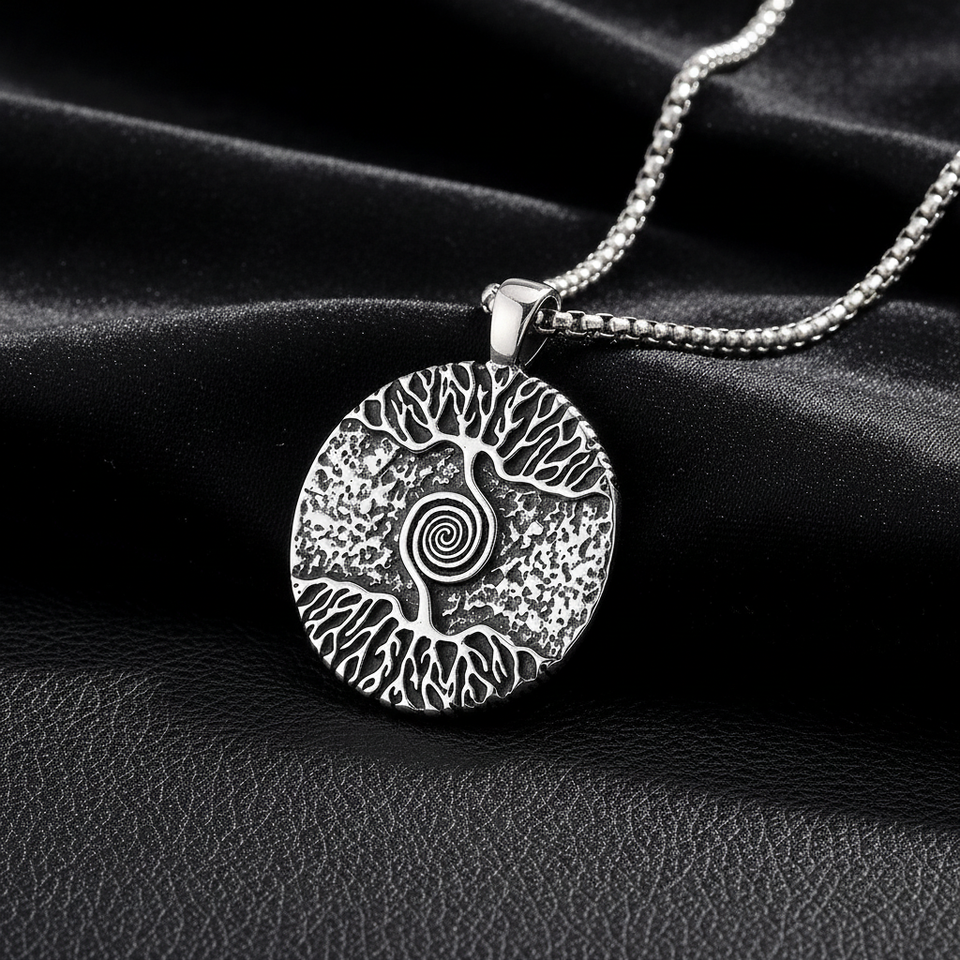Collier pendentif arbre de vie viking en acier inoxydable personnalisé, symbole en spirale, bijoux de mythologie nordique, amulette gothique rétro pour homme, cadeau