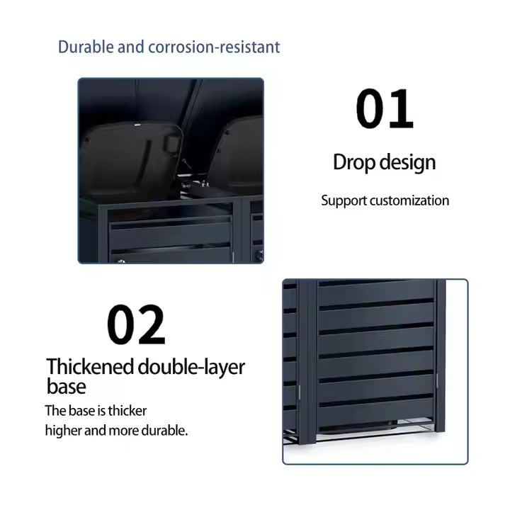 Corbeille intérieure personnalisée en acier inoxydable pour poubelle à roulettes avec vérins hydrauliques et chaînes de renforcement, couvercle supérieur intégré et structure intégrée