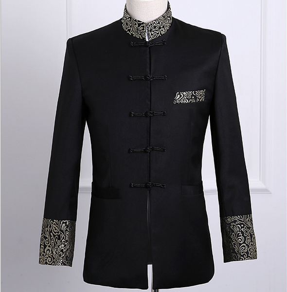Costume de scène sur mesure à col montant, demi-toile, pour animateur, chanteur, smoking, tunique chinoise