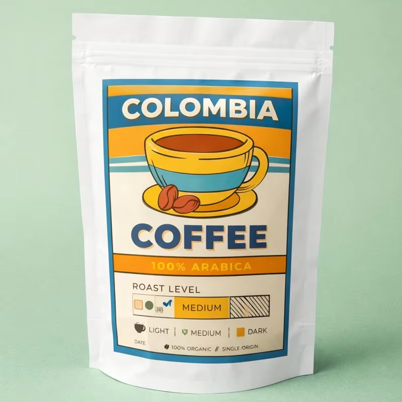 Pochette à café personnalisée à fond plat | Format Doypack | Laminé haute barrière | Sacs imprimés OEM