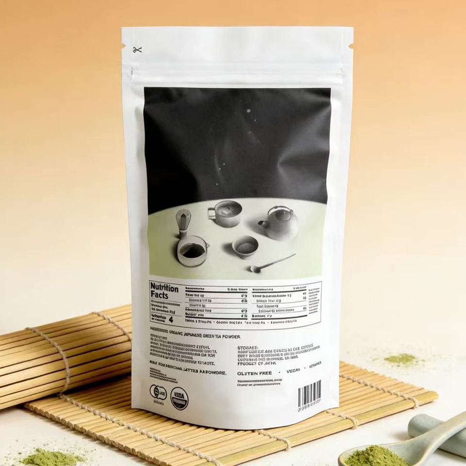 Pochette personnalisée avec fermeture éclair, qualité alimentaire, pour poudre de matcha, emballage pour thé