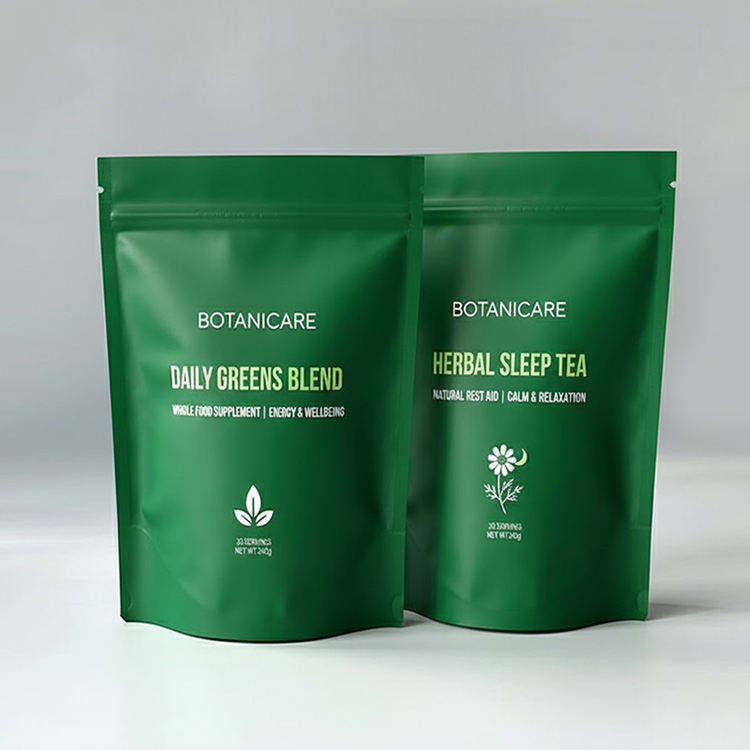 Pochette personnalisée pour l'emballage du thé | Matériau plastique laminé | Fermeture à glissière, encoche de déchirement, finition brillante ou mate | Vietnam